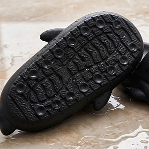 Anti-slip 'tire-tread' pattern tested on wet tiles for maximum safety and confidence.